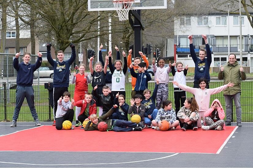 Jeugd van High Five is fanatiek buiten aan het basketballen